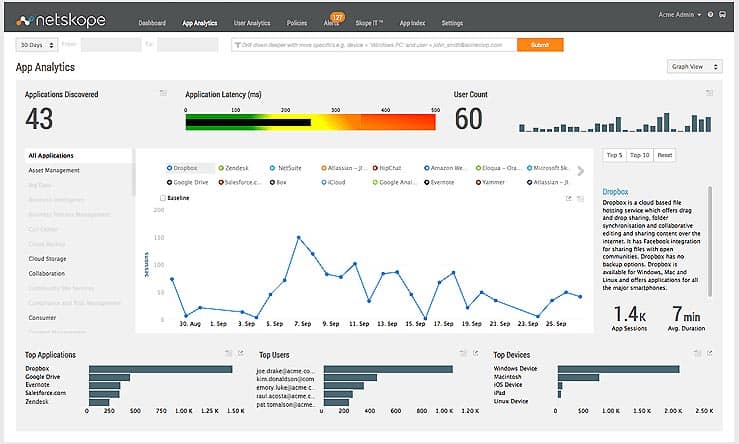 Die Active Platform des kalifornischen Anbieters hilft Unternehmen dabei, die Nutzung aller Cloud-Apps transparent darzustellen. Die Software besteht aus drei Kernkomponenten: Die Funktionsebene „Discovery“ identifiziert zunächst sämtliche Cloud-Services, die auf Geräten im Netzwerk genutzt werden. Wie und wofür Mitarbeiter die Apps einsetzen, stellt anschließend die Software-Komponente „Active Visibility“ dar. Mit „Active Analytics“ können Unternehmen alle gewonnenen Daten für weitergehende Analysen zusammenfassen. Darüber hinaus lassen sich spezielle Regelwerke einrichten, die nur freigegebene Cloud-Anwendungen zulassen.
