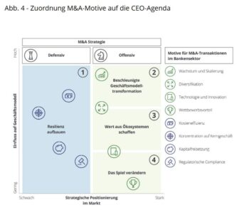 Die Auswirkungen des Strukturwandels fallen je nach Bankensegment unterschiedlich aus. Sparkassen und Genossenschaftsbanken stärken ihre Marktposition vor allem durch Fusionen und den Ausbau digitaler Fähigkeiten. Großbanken und Landesbanken verlieren dagegen Marktanteile und sehen sich gezwungen, ihre strategische Positionierung grundlegend zu überprüfen. Besonders hoch ist der Konsolidierungsdruck bei Bausparkassen und Realkreditinstituten. Neobanken und FinTechs nutzen gezielt M&A-Aktivitäten, um Skaleneffekte zu erzielen und regulatorische Anforderungen besser abzusichern. Ein zentrales Ergebnis der Studie ist die Neubewertung von M&A-Strategien.