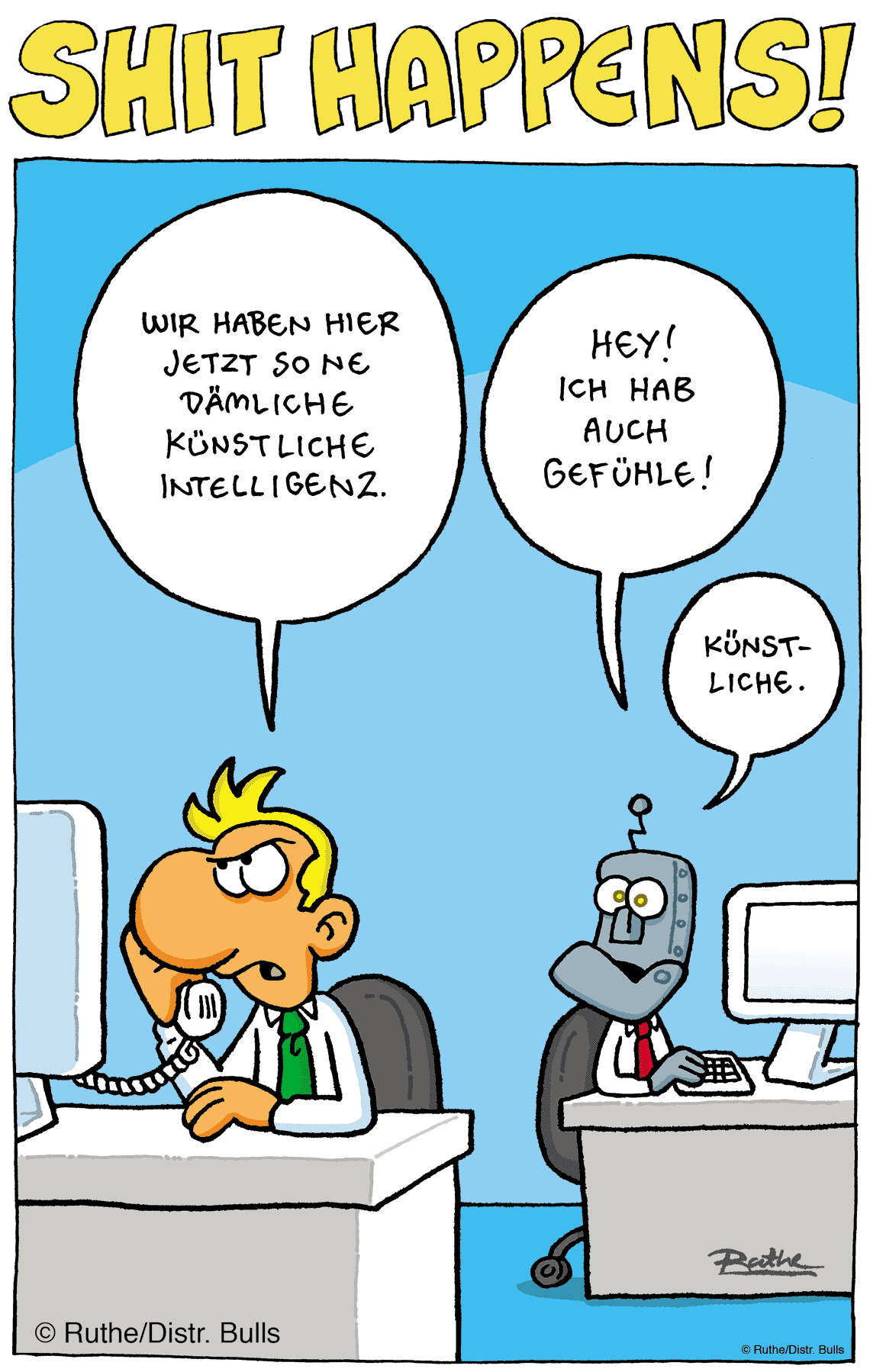 #TGIF CARTOON27. März 2020 Der neue KI-Kollege … hat auch Gefühle Der neue KI-Kollege hat auch Gefühle … künstlicheRalf Ruthe Alle bisher veröffentlichten #TGIF-Cartoons finden Sie hier. Weitere Cartoons von Ralf Ruthe gibt es auf seiner Website hier.aj Sie finden diesen Artikel im Internet auf der Website:https://itfm.link/103551 teilen teilen teilen teilen teilen RSS-feed E-Mail drucken Schreiben Sie einen Kommentar Antwort abbrechenIhre E-Mail-Adresse wird nicht veröffentlicht. Erforderliche Felder sind mit * markiertKommentar * Name * E-Mail * Ja, ich möchte bitte zudem den IT Finanzmagazin-Newsletter abonnieren. Bitte NUR anklicken, wenn Sie wirklich den Newsletter erhalten möchten - für das Absenden des Kommentars ist es nicht notwendig!