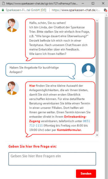 Auch eine Social Media Marketing Suite (ebefalls SFP) gebe es nun. Das Angebot ermögliche es den Instituten, ihre Social-Media-Aktivitäten (Community Management, Analyse, Reporting, Marketing-Aktionen, Werbung oder notfalls Krisenkommunikation) “schnell und einfach von einem Ort aus und über alle Kanäle hinweg zu managen”, heißt es im Bericht. Der vom SFP für die Sparkassen bereitgestellte Chatbot Linda sorge für die rasche Beantwortung von derzeit fast 1.000 standardisierten Fragestellungen. Damit solle die Kundenzufriedenheit gesteigert werden und die Berater würden mehr Zeit für den individuelle Kundendialog – zum Beispiel über komplexe Anlagethemen – bleiben.