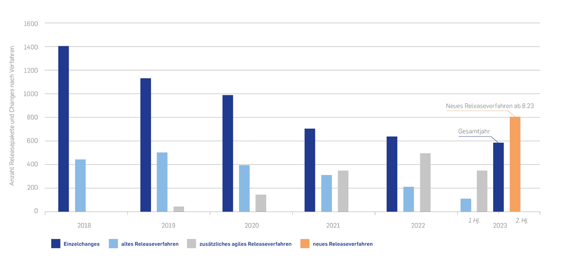 Die Anzahl der Einzelchanges konnte seit Einführung des agilen Release-Prozesses kontinuierlich reduziert werden.<q>dwpbank</q>