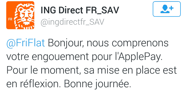 Im Prinzip bemühen sich die Banken auf jede Kundenanfrage einzugehen, ohne die Kunden dabei brüsk vor den Kopf zu schlagen. BNP die größte französische Bank bedauert keine detaillierten Informationen liefern zu können. Die französische Bank CIC gehört zur gleichen Bankengruppe wie die Targobank: hier kommt (in puncto Formulierung) noch ein “leider” hinzu. Neuigkeiten gibt es aber nicht. Bei der französischen ING ist man aber zumindest in einem Überlegungsprozess.