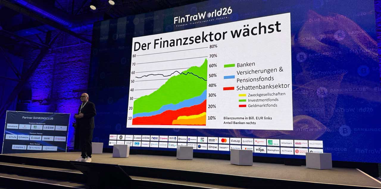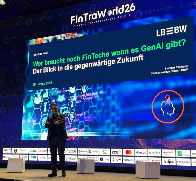 Die nun dritten Auflage der früheren FinTech World fand diesmal mit neuem Namen in Köln statt: FinTra World. Nach dem Neustart im letzten Jahr war es die erste Veranstaltung des „neuen“ Bankingclub und damit auch die erste große Veranstaltung der Branche in Köln. von Dirk Emminger. Die Kölner Motorworld kennen viele bereits von den Bankingclub Kongressen. Am Rande von Köln fanden sich diesmal aber nicht nur kleinere Gruppen zusammen, sondern der Bankingclub stellte eine Veranstaltung mit 2 Hauptbühnen, 2 Nebenbühnen und über 50 Fintechs auf die Beine. Das ehemalige Flughafengelände bot ausreichend Platz für die wahrscheinlich größte Teilnehmerdichte an Mitarbeitern aus Instituten. Sogar einige internationale Anbieter verbrachten zwei Tage, um den deutschen Markt kennenzulernen. . Über 1,5 Tage konnten die Teilnehmer eine Vielzahl von Formaten erleben. Von klassischen Vortragsformaten, Anwenderberichten, Masterclasses und Pitch Bühnen bis hin zu 1:1 Gesprächen an Messeständen wurde alles angeboten, was in eine solche Branchenveranstaltung gehört. Thematisch gab die FinTra World kein Leitthema aus. Neben AI wurden die Themen europäische Souveränität und Standortfragen stark bespielt. Wer braucht noch FinTechs, wenn es GenAI gibt?!. . . Diese Frage kommt diesmal nicht von der Redaktion, sondern von Stephan Paxmann, Chief Innovation Officer der LBBW. In seinem Vortrag bediente er die Frage sehr gut, ohne erneut die Vorteile von GenAI zu wiederholen, und zeigte auf, wie sich vor allem die Entwicklung in einem modernen Institut geändert hat. Drei griffige Merksätze von Stephan Paxmann: „1. Die Steuerung schlägt mittlerweile an vielen Stellen die Geschwindigkeit. zweiten reine Optimierung reicht nicht. dritten In Zukunft müssen wir alle in Agenten und weniger in Apps denken“ sind nachvollziehbar und klar formuliert. Die LBBW war wir die letzten Jahre auch mit einer großen Mannschaft und einem großen Stand vor Ort. Neue Gesichter beim Hauptsponsor der FinTra World, S A P Fioneer!. . . Der erste Auftritt nach seinem Wechsel von zuletzt Dock Financial hatte Marko Wenthin von S A P Fioneer. Mit seinem Team möchte der Serial FinTech den Anbieter von Bankensoftware, speziell Core Banking, in die nächste Ära führen. Mehr Bank Fachlichkeit und Differenzierung mit komplexeren Lösungen statt „Technology only“ soll die Zielrichtung sein. Immer wieder spannend sind die Referenzen aus dem Ausland der deutschen Traditionsmarke. [ -]Viele starke Bank Vorträge und die Möglichkeit für 1:1 Gespräche!. . Wer den Bankingclub kennt, weiß, dass die Podiumsteilnehmer in der Regel eine lange Verbundenheit zur Community haben, und dass man als Teil dieser Community schnell Kontakte knüpfen kann. Es bleibt immer Raum für Fragen und 1:1 Diskussionen. Bestes Beispiel: Christian Rhino, ßieh Ei Oh Private Bank der Deutsche Bank AG. Nachdem er das Concept of One, die Basis der Technologiestrategie, erläuterte, wurde deutlich, wie stark eine gemeinsame Architektur der DB Marken, einheitliche Standards und geteilte Plattformen zur Skalierbarkeit und Effizienz beitragen. . Christian Rhino brachte es auf den Punkt: „Nutzt die Technologien am Markt und wartet nicht, bis sie zu euch kommen.“ Und weiter: „Banken müssen verstehen, dass sie durch Technologie einen Wettbewerbsvorteil erlangen können.“. . Inhaltlich waren neben den obligatorischen Ka I Themen aber auch die Dauerbrenner DORA, europäische Resilienz, FIDA und der digitale Euro vertreten. Hans Rainer van den Berg (CEO euro V) diskutierte mit Teilnehmern über den anstehenden Dialog der EZB, den Stand des Rulebooks und forderte eine stärkere Involvierung der Industrie. Joris Hensen (Founder und Co Lead des Deutsche Bank API Programms) führte durch die Innovationen im FIDA- und Open Finance Umfeld, und die Plaudertaschen nahmen noch einen Live Podcast auf. [ -]. . Pitches in Themenwelten, Mehr Tech als FinTech und nicht nur Early Stage!. . . Über beide Tage pitchten auf der separaten Pitch Bühne die Teilnehmer der FinTechs in unterschiedlichen Kategorien um den Tagessieg und am zweiten Tag dann in reduzierter Anzahl um den Gesamtsieg. Über die Jahre ist interessant zu beobachten, dass sich der Fokus der Startups auf der FinTra World immer mehr Richtung Bieh tu Bieh Tech dreht. Das ist auch vor dem Hintergrund der Gründungen im B2C Bereich in unserer Branche nachvollziehbar. Der Jury wurde es besonders durch die unterschiedlichen Stadien, in denen sich die Startups befinden, nicht ganz einfach gemacht. Auffallend wenige Pitches suchten konkret nach Investoren und leider war auch wenig „Kapital“ auf der Veranstaltung vertreten. Am Ende überzeugte die Jury das Startup „StrategyBridgeAI“, und das Publikum hob das zugegeben sehr etablierte Startup „WealthApi“, vertreten durch Susanne Krehl, auf den ersten Platz. Zahlen rund um die FinTra World 2026, es wird bereits an 2027 geplant!. . Teilnehmer von über 120 unterschiedlichen Banken, Versicherungen und Finanzdienstleistern fanden den Weg nach Köln. Über 72 Technologie Aussteller, viele Startups, sowie über 24 Partner und Aussteller waren vertreten. Es gibt noch kein konkretes Datum, aber eins ist sicher: Es wird 2027 eine weitere Auflage der FinTra World geben. Diese wird auch wieder in Köln sein, und die Jahreszeit wird auch nicht so warm sein, das man auf eine Heizung verzichten kann.Sie hörten einen Beitrag von „Dirk Emminger“