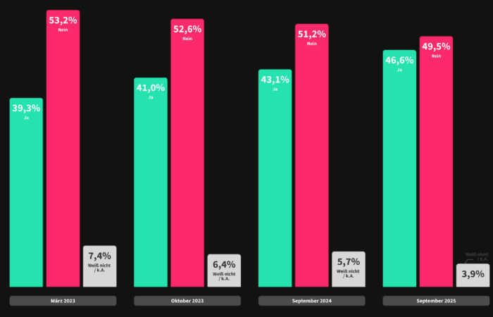 Die Daten dieser Befragung basieren auf Online-Interviews mit Mitgliedern des YouGov Panels, die der Teilnahme vorab zugestimmt haben. Für diese Befragung wurden im Zeitraum 03. und 05.09.2025 insgesamt 2009 Personen befragt. Die Erhebung im Auftrag von Gini (Website) wurde nach Alter, Geschlecht und Region quotiert und die Ergebnisse anschließend entsprechend gewichtet. Die Ergebnisse seien repräsentativ für die Wohnbevölkerung in Deutschland ab 18 Jahren.ft