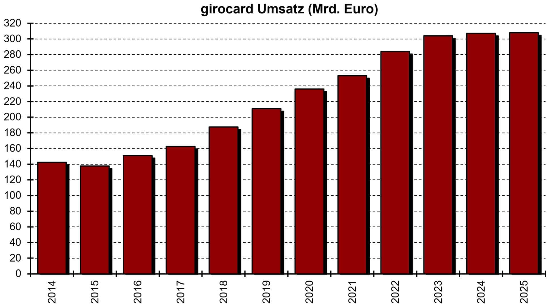 Immerhin nehmen die Nutzungsmöglichkeiten für die girocard weiter zu: Die Verbraucher konnten mit der Karte 2025 an 1,344 Millionen aktiven Terminals bezahlen (2024: 1,208 Mio. Terminals) – ein Zuwachs um 11,3 Prozent.