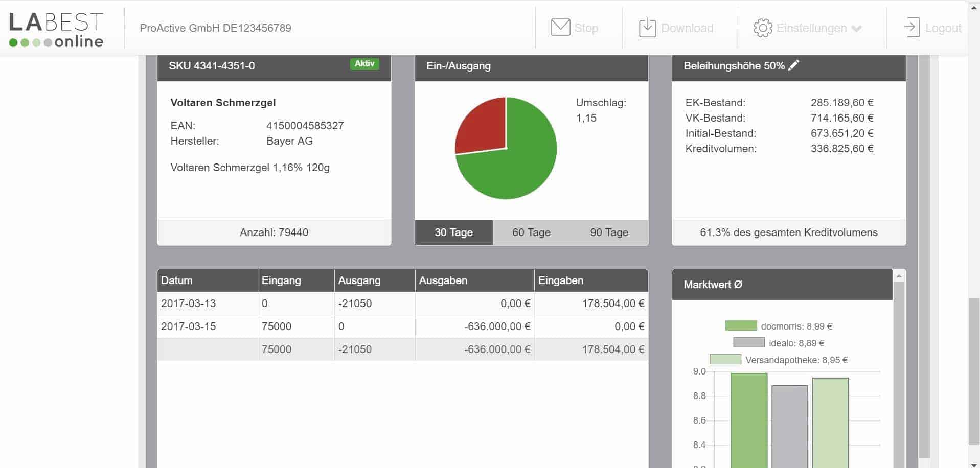 zusammen. So sorge es für mehr Markttransparenz, indem es durch Echtzeitanalysen tages- bis minutenaktuelle Preise von Vergleichsprodukten in das System einspielt. Unternehmer und vor allem Banker können dabei sowohl historische Entwicklungen als auch tagesaktuelle Preise der Waren- und Lagerbestände abrufen und außerdem den Sicherungswert, das abgerufene Kreditvolumen und den aktuellen Kreditrahmen flexibel und effizient steuern.