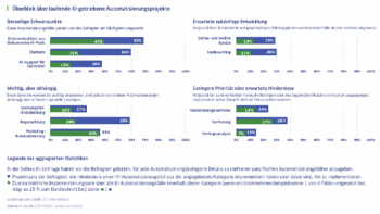 Die größten Fortschritte zeigt laut Studie derzeit das Schadenmanagement in der Kfz-Versicherung. Rund 64 Prozent der Versicherer nutzen KI bereits für Aufgaben wie Dublettenerkennung in Dokumenten oder die automatisierte E-Mail-Triage. Deutlich weniger fortgeschritten ist der Einsatz im Underwriting, wo die Prozesse vielfach noch manuell erfolgen. Am häufigsten kommt KI aktuell bei der Datenextraktion zum Einsatz (69 Prozent), gefolgt von Chatbots (60 Prozent). Anwendungen im Callcenter-Support befinden sich mit einer Nutzungsquote von 38 Prozent dagegen noch im Aufbau.