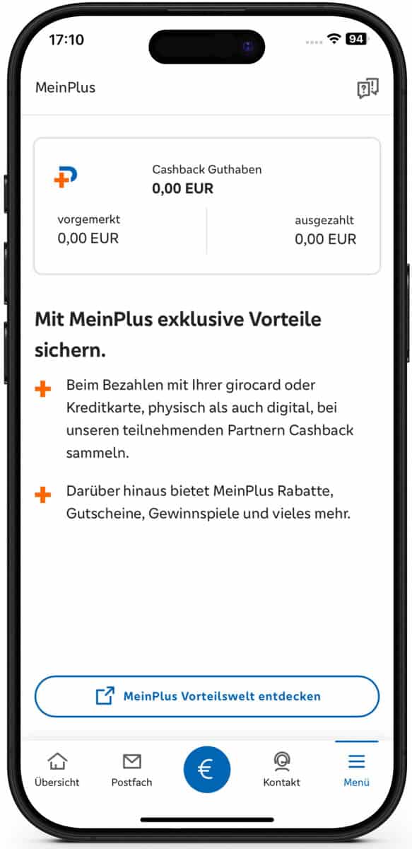 Der Rollout der MeinPlus Wallet in der VR Banking App wurde im Dezember 2025 erfolgreich gestartet und soll nun sukzessive auf die teilnehmenden Volksbanken und Raiffeisenbanken ausgeweitet werden. Durch die Integration werden Konto und Vorteilswelt direkt miteinander verknüpft: Der Cashback-Stand ist damit in der VR Banking App sichtbar und aktualisiert sich automatisch mit jeder Zahlung.