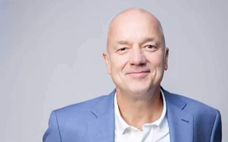 Jörg Dietmann, Mitgründer von Nagarro, präsentiert sich in einem blauen Blazer. Sein Lächeln symbolisiert Optimismus im Kontext der Herausforderungen, die Künstliche Intelligenz im Finanzsektor mit sich bringt, um Werte zu schaffen.