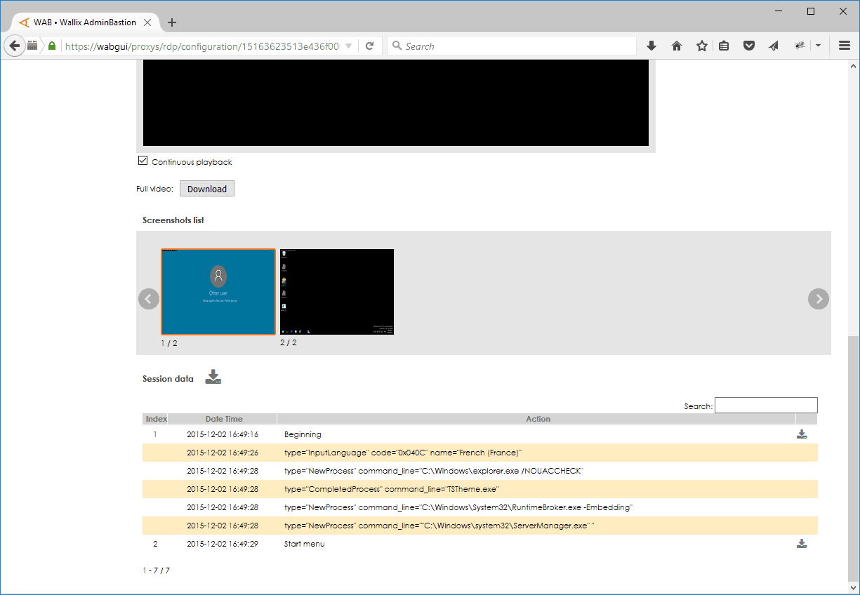 Screenshots aus Sessions ermöglichen eine genau Dokumentation. Reportings können automatisch oder individuell einfach erstellt werdenWALLIX