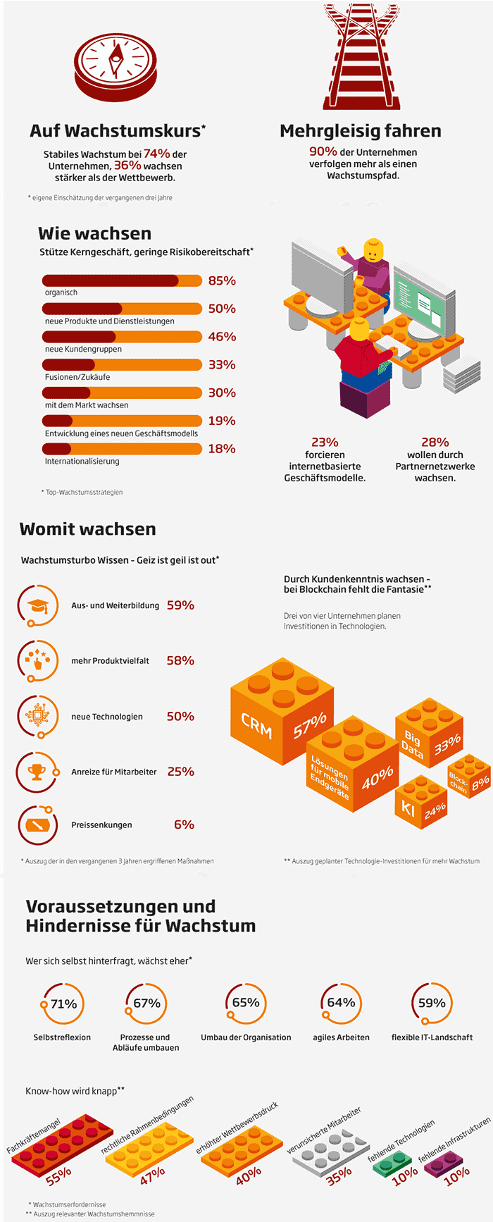 Für die Studie „Potenzialanalyse flexibel wachsen“ hat das F.A.Z.-Institut im Auftrag von Sopra Steria Consulting im April und Mai 2018 eine Online-Befragung bei 249 Entscheidern und Fachkräften verschiedener Branchen (Banken, Versicherungen, sonstige Finanzdienstleistungen, Energie- und Wasserversorgung, Telekommunikation/Medien, öffentliche Verwaltung, Automotive, sonstiges verarbeitendes Gewerbe) durchgeführt. Die Teilnehmer wurden zu ihren Wachstumsstrategien, -maßnahmen und -erfordernissen sowie zu aktuellen Wachstumsbremsern befragt.