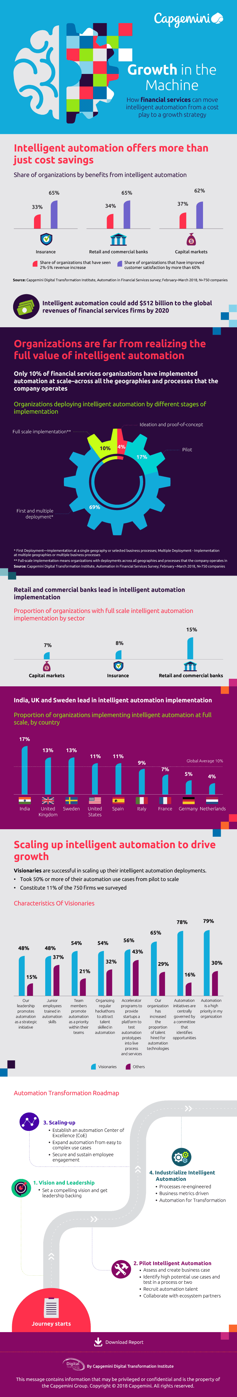 Capgemini befragte im Zeitraum von Februar bis März 2018 1.500 Führungskräfte aus 750 globalen Unternehmen. Die Sektoren, auf die sich Capgemini konzentrierte, waren Retail- und Geschäftsbanken, Finanzmärkte sowie Lebens- und Nichtlebensversicherungen. Von den Unternehmen hatten 42 Prozent einen weltweiten Umsatz von mehr als 10 Milliarden Dollar. Die Umfrage umfasste Organisationen aus neun Ländern – Frankreich, Deutschland, Italien, den Niederlanden, Spanien, Schweden, Indien, dem Vereinigten Königreich und den Vereinigten Staaten.
