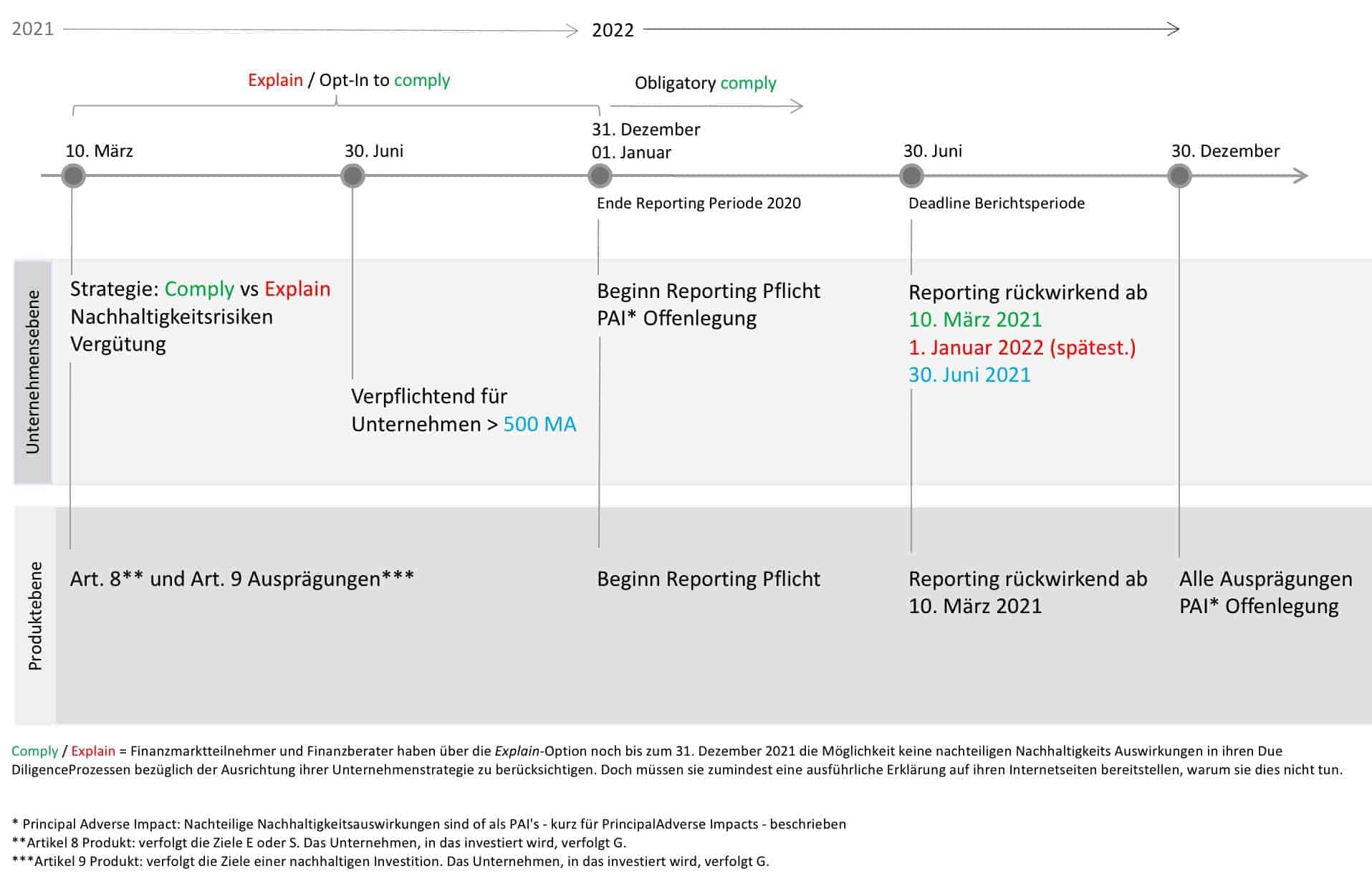 Dass genau dieser Weg unweigerlich beschritten werden muss, wird mit einem Blick auf die zeitlichen Vorgaben zur Umsetzung der Offenlegungs-Verordnung deutlich. Denn zum 10. März dieses Jahres tritt die Verordnung in Kraft.