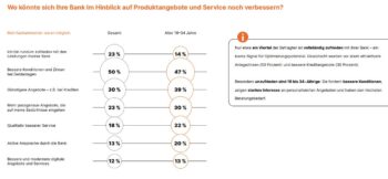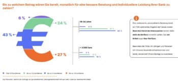 Ein erweitertes Dienstleistungs- und Serviceangebot kann sich für die Banken rechnen: Drei Viertel der zahlungswilligen Kunden wären bereit, bis zu fünf Euro pro Monat für individuelle Services zu zahlen. Bei den Jüngeren zeigt sich sogar jeder Dritte offen für höhere Beträge. Junge Kunden sind bereit zu zahlen – aber nur für echten Mehrwert. Dafür müssen Banken ihren klassischen Beratungsansatz überarbeiten und beispielsweise auch in markterweiternden Kooperationen denken“, erklärt Böx.